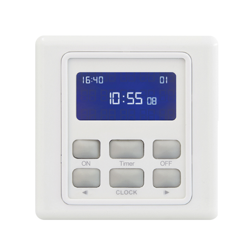 墙壁式多段定时风机开关,有六个按键和LCD液晶显示屏,适用于排风扇等各种风机。 产品每天可预设四段自动开启和关闭时间,在每段设定的工作时间内,还可预先设定风机的速度。定时时间及风机速度设置后有记忆功能,无需每天调节。