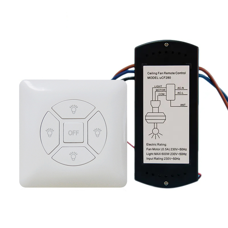 条形多档带灯吊扇遥控器,接收器和发射器通过无线电通讯,可穿透墙壁遥控,遥控距离可达10-30米之间。适用于上钟为条型的装饰吊扇。 发射器有条形和标准86型,无需安装接线,可带LED液晶显示屏。 产品可适用于白炽灯、节能灯、荧光灯,装饰吊扇、工业吊扇、普通吊扇等。可轻松组网并入智能家居系统。