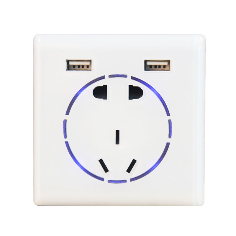 带彩色夜灯的86型标准小五孔墙壁插座,同时设计有二路USB插口。独特的仿玻璃面板,不易褪色变黄。多功能插口,让数码产品彻底摒弃充电器,方便环保,适用广泛。可直接安装在墙壁、桌面及地面。